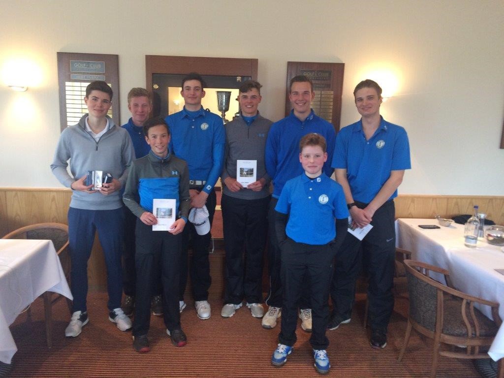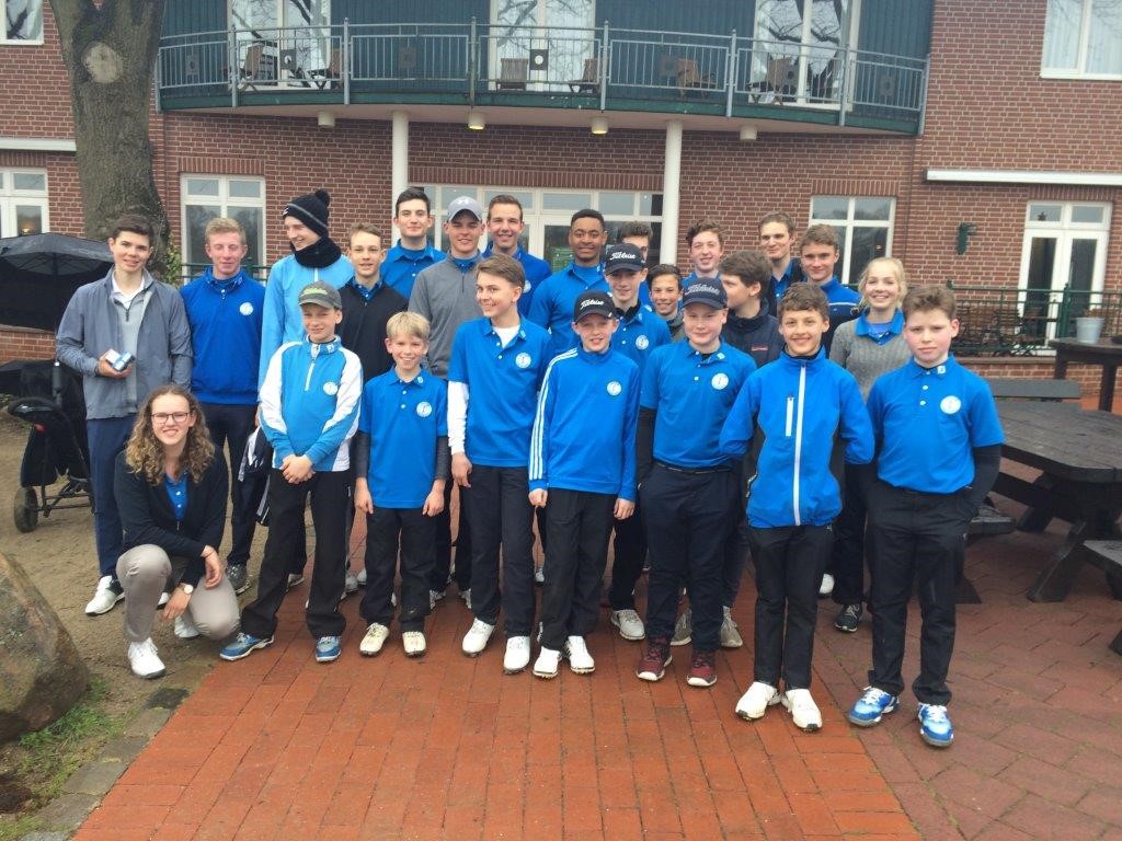 Die Sieger (Tim, Jonas, Maxi, Nick, Jan, Luca, Michael, Jonas) und wer sich über die Grösse der Jungs wundert - Golfspieler werden so groß.