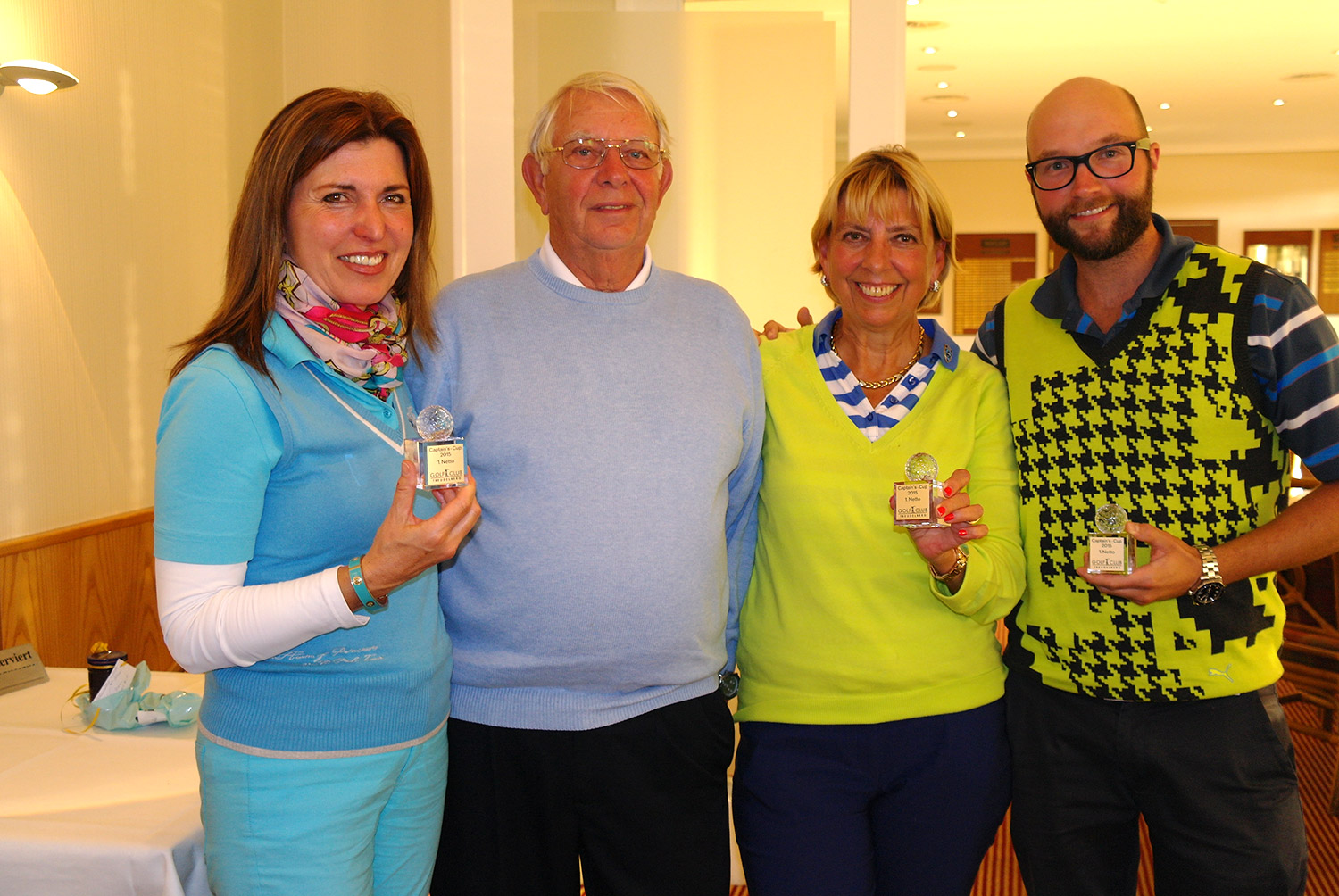 Gewonnen wurde auch. Mit 20 Brutto- und 26 Nettopunkten gewann der Flight mit dem Pro Jan Blazek, Véronique Brombach und Ingeborg Lautz. Mit 24 Nettopunkten folgte ihnen Knut Baras, Enrico Zachhuber und Ulla Loff und den 3.Platz belegten mit 23 Nettopunkten Jörg Fenner mit Stefanie Pöthe und Julia Stegmann.