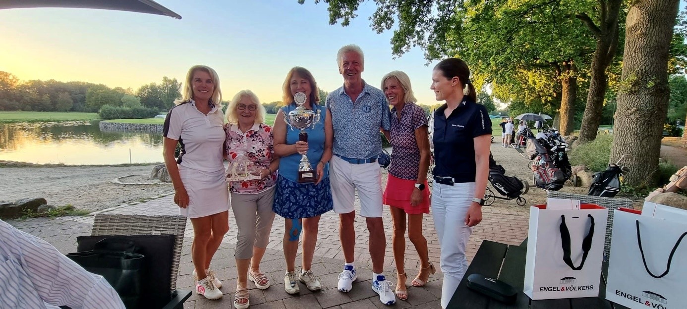 Der Siegerpokal und die Siegprämie in Höhe von 300,- € wurde von Julia Pflugbeil an die Ladies Captains übergeben. Damit die Herren die Niederlage besser verkraften, haben die Damen die Siegprämie mit den Herren geteilt. Zum Abschluss wurden Nicole Seidensticker und Wolfgang Steigerwald bei der Preisverlosung mit einem Präsent von Engel & Völkers beglückt. Der Men`s Captain sagt tausend Dank und wird sehr gerne in 2024 die Organisation wieder übernehmen. Vorausgesetzt die „Umstände“ lassen dies auch im nächsten Jahr wieder zu!