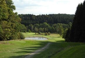 Egal, früh am nächsten Morgen ging es dann bei wunderschönem Sonnenschein auf den nicht weit entfernten Golfplatz (Golf- und Landclub Haghof e.V., 73553 Alfdorf-Haghof). Die ungewohnte Hügellandschaft (300 bis 500 m) stellte uns vor große Herausforderungen, da die Balllagen nicht eben waren. Auf einem Loch wurde der römische Limes überspielt (Loch 17).