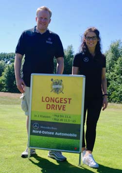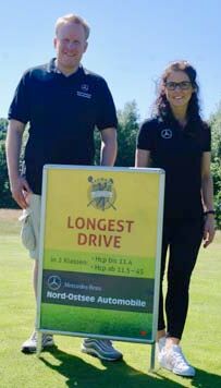 Als Sonderpreise für »Nearest to the line« hatten Iris Gödecke und Gordon Koch von Optiker Köpcke zwei Sonnenbrillen ausgeschrieben. Die glücklichen Gewinner waren Volker Schinkewitz vom GC Gut Waldshagen und Ulf Jungjohann vom GC Büsum. Die Autopflege-Gutscheine im Wert von je 150 Euro, die es bei Bruni Altmann und Alexandra Ludwig für die Schläge »Nearest to the Pin« zu gewinnen gab, sicherten sich der Treudelberger Dr. Jens Herzbach und Jürgen Haase vom GLC Gut Kaden. Die längsten Drives belohnten Belma Amcovic und Sebastian Bartels non Nord-Ostsee-Automobile mit je einer Mercedes-Benz-Kollektion. Peter Siercke konnte seinen Preis dagegen wieder mitnehmen. Ein »Hole-in-One« wollte keinem Teilnehmer gelingen