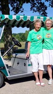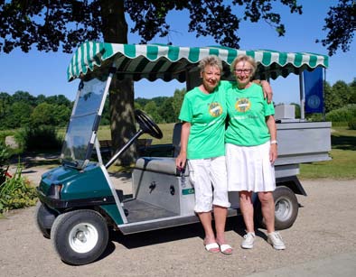 Freiwillig früh aus den Federn waren an diesem Morgen außerdem noch andere. Zum Beispiel Anke Neyer und Marga Winkler. Sie schickten später die Teilnehmer von Tee 1 und 10 ins Rennen. Inge Quiel-Roggensack und Adriane Beck beluden derweil bereits ihren elektrischen Service-Buggy, um dann bis zum Turnierende dafür zu sorgen, dass keiner auf den Fairs verdurstete. Natürlich waren da auch schon die »Drei von der Leitstelle« längst vor Ort: Hans-Werner Arleth, Jörg Fenner und Bruno Meissner, die sich in diesem Jahr die Verantwortung für das Ganze teilten.