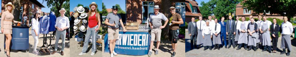 Mit einer heißen Wurst mit Currysoße oder Senf erwartete dann das Restaurant Del die Spieler an der Halfway-Station. Als Dessert gab es dazu Wassermelone oder von der Bäckerei Reinhardt einen leckeren Butterkuchen. Nach der Runde schenkte die Kehrwieder-Brauerei jedem gerne noch ein selbstgebrautes Bier ein und wer wollte, konnte sich in einer am Nachmittag aufgebauten Ausstellung von Hüten, Anzügen und Schuhen noch ein aktuelles Männer-Mode-Bild machen.