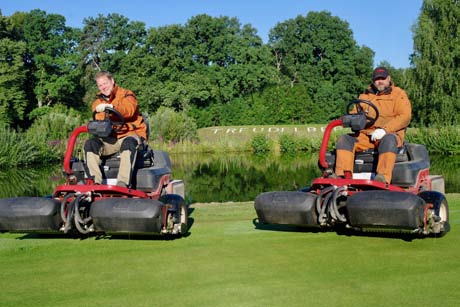 Lange bevor die Ersten abschlugen, herrschte schon mächtiger Betrieb auf dem Platz: Bob Heargraves und seine Mitarbeiter Sven Wischmann und Rigo Schulz (von links) sorgten für beste Spielbedingungen