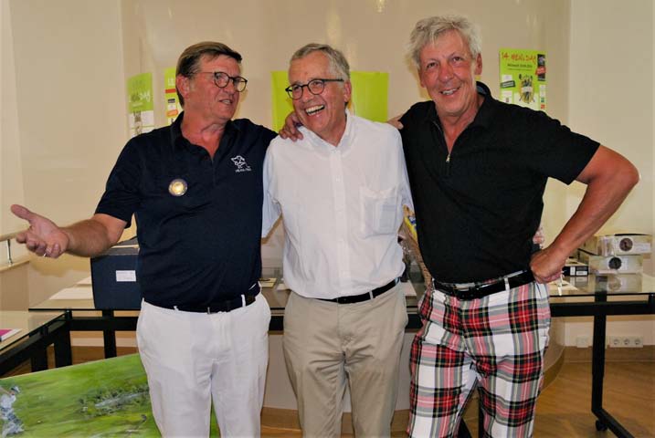 Die Chefabteilung des Men’s Day 2018: Jörg Fenner, Bruno Meissner und Hans-Werner Arleth (von links). Am Ende des Tages durften die drei zufrieden feststellen: Es war eine rundherum gelungene Veranstaltung mit Sonne pur, über 50 Preisen im Gesamtwert von rund 15 Tausend Euro, eine super Stimmung und alle sind glücklich nach Hause gegangen