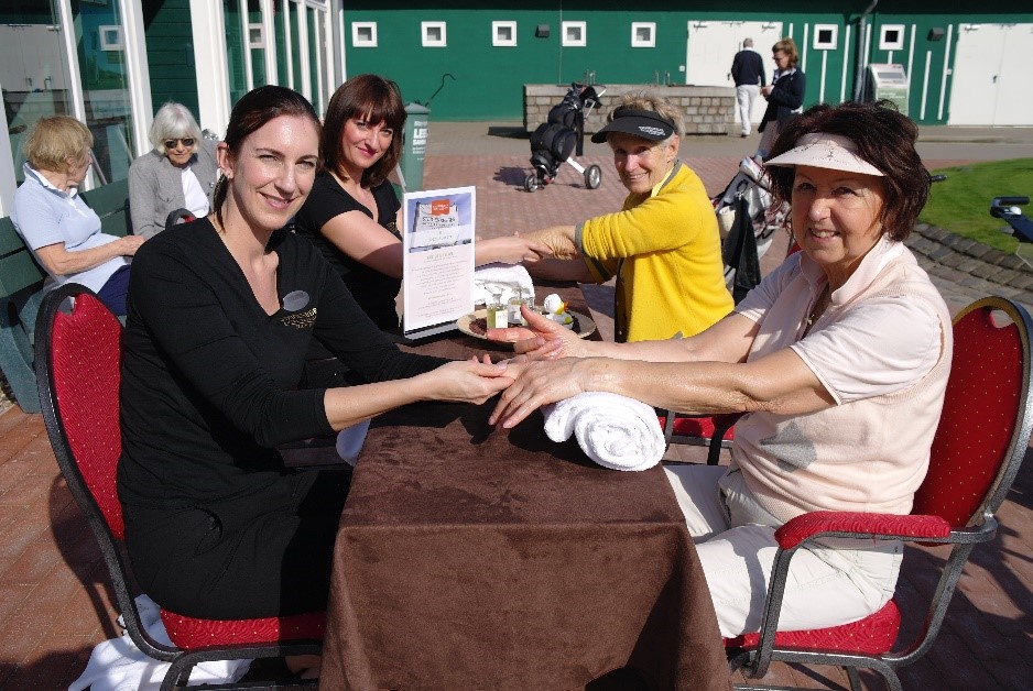 Nach dem Golfen verwöhnten Anne und Anna vom Vinoble Day Spa die Damen mit einer entspannten Handmassage.
