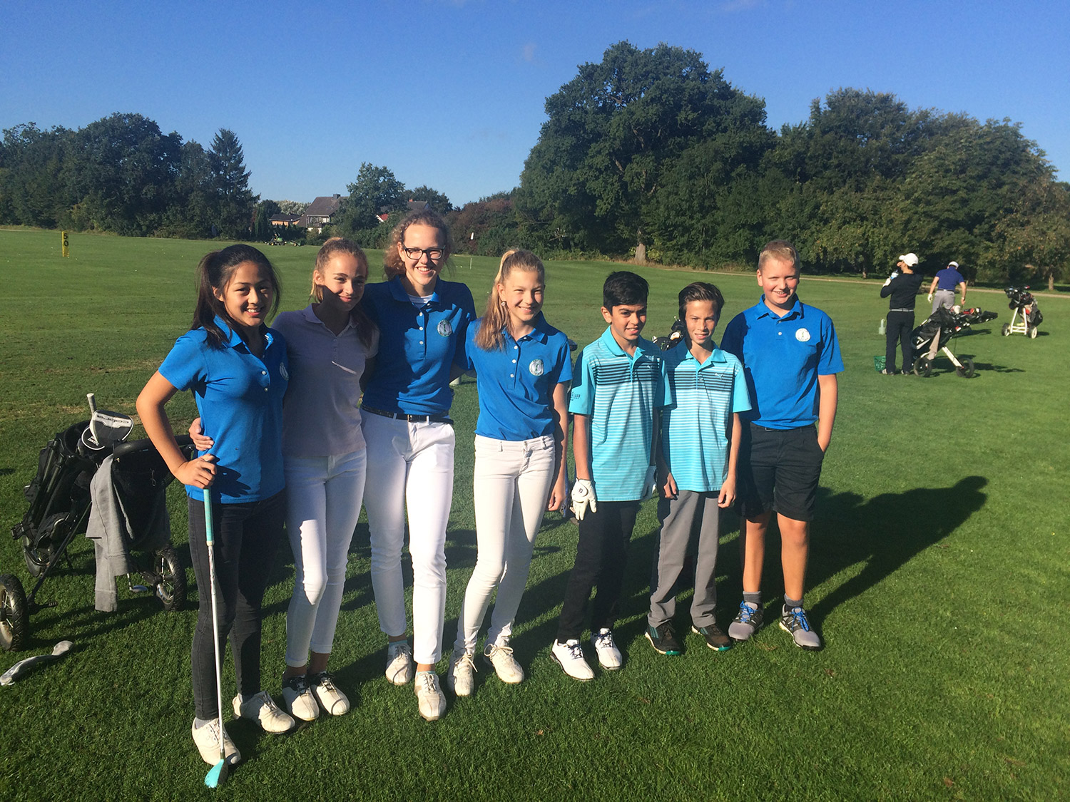 Das haben sie mit Bravour geschafft: Tany mit 41, Johanna mit 37 und Annabel mit 34 Stablefordpunkten. Mit Hilfe von Armins 40 Punkten konnten wir in unserer Gruppe so den ersten Platz erzielen.