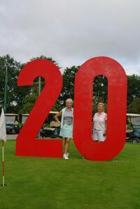 Vor zwanzig Jahren hatte Ingeborg Henkel - längst "Ehren-Ladies-Captain" während ihrer ersten Amtszeit zur Premiere des Schwanenturniers geladen. Deshalb gab es doch einige Überraschungen. Schon auf dem Putting-Grün vor der Golf-Rezeption wies eine überdimensionale 20 auf den runden Geburtstag hin. Davor, wo die Scorekarten ausgegeben wurden, überreichten Ines Hagen-Kutter und Regine Ulber allen ein kleines Tee-Geschenk aus Golfball, Keks und Tees, das Arlette Widmer Lankers - der Gast mit der weitesten Anreise - aus Luzern mitgebracht hatte und am späten Abend hatte Küchenchef Götz F. Haaf mit einem weißen Schwan in Lebensgröße als süße Verführung aus der Hotel-Patisserie seinen großen Auftritt.