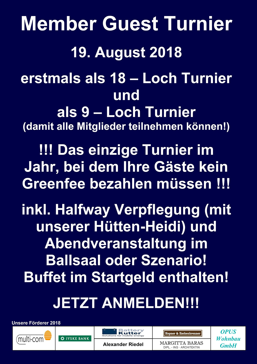 Es soll ein toller Tag mit vielen Gästen werden. Für 39 Euro pro Person wird ein Chapman – Vierer gespielt (Wunschflights natürlich möglich), ein gutes Halfway und eine schöne Abendveranstaltung mit Buffet geboten (Getränke am Abend sind hierbei natürlich nicht enthalten).