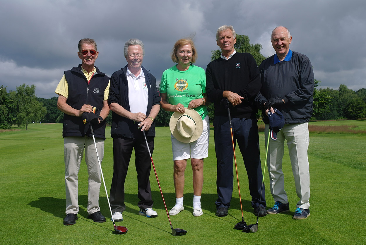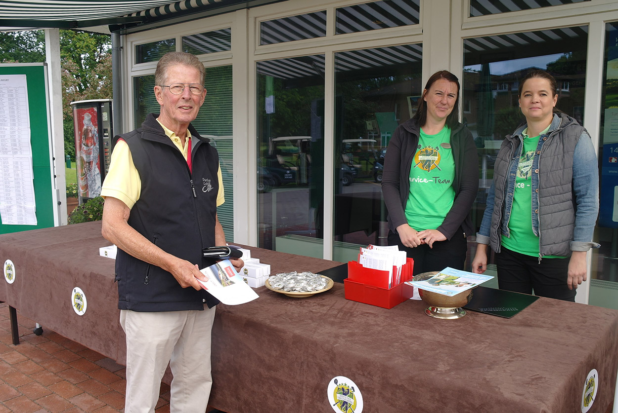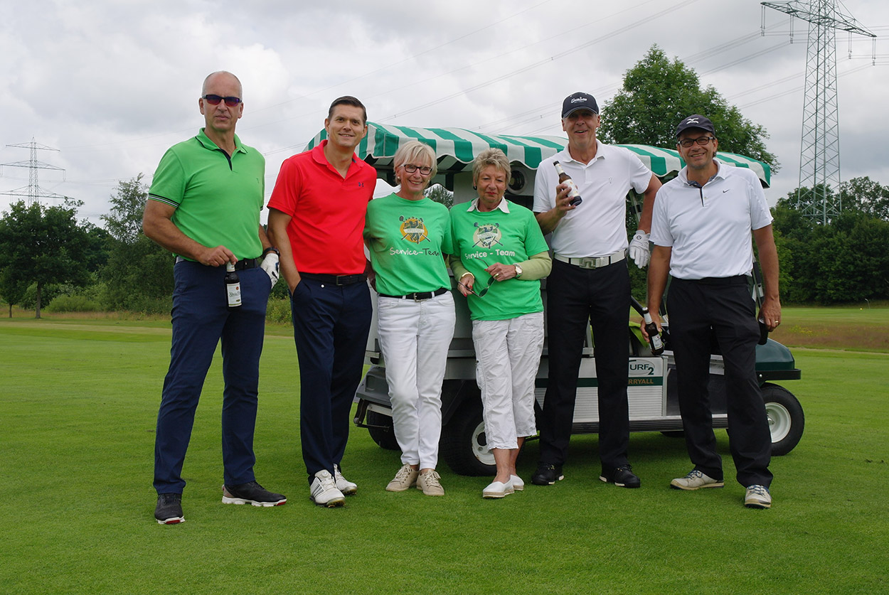 Überhaupt spielte das schwache Geschlecht an diesem Herren-Nachmittag eine ganz starke Rolle. Vor und hinter den Kulissen der Golfrezeption hatten Julia Smailes und Julia Stegmann alles wie gewohnt im Blick und Griff. Adriane Beck, Anke Neyer, Ingeborg Roggensack und Marga Winkler sorgten schon beim Start, an vielen Stellen unterwegs und natürlich an der Halfway-Station unentwegt dafür, dass niemand auf der rund sechsstündigen Runde verhungerte oder –durstete. Und an der B4 luden auch in diesem Jahr wieder die Damen Altmann neben ihrem Reifen-Service-Mobil zu einer sprudelnden Trinkpause ein und füllten das Ball-Kontingent aller Teilnehmer auf. Einziger Mann in der Versorgungsrunde: Olaf Reinecke. Der Traumküchenrealisierer hielt, wie gewohnt, alle mit seiner Kaffeebar wach und bei Laune.
