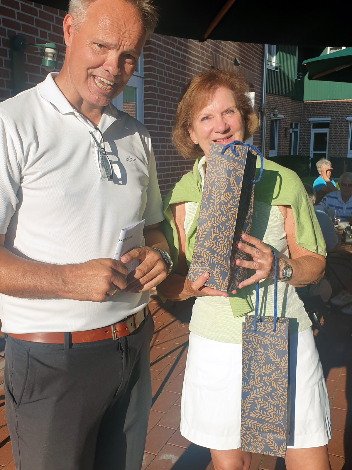 „Bei bestem Wetter und in ausgezeichneter Stimmung gingen alle Turnierteilnehmer auf die Runde. Alle? Nein! Einige wenige, namentlich: die Men‘s Captains, hatten daran zu schlucken, dass sich lediglich acht Herren-Flights getraut hatten, im Chapman-Vierer gegen die Damen anzutreten. So mussten mehrere Damen-Flights leider ohne männliche Gegenspieler auf die 18 Löcher gehen.