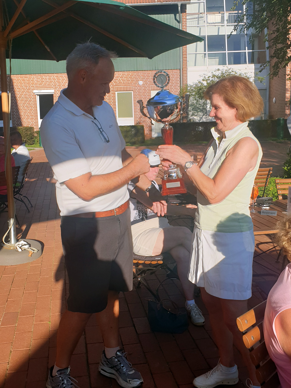 Das Turnier, das auf Initiative von uns Herren wiederbelebt wurde, wird im kommenden Jahr von den Damen ausgerichtet. An einem Dienstag Anfang September. Vielleicht wird dann von rot gespielt. Und bis dahin gibt es bestimmt auch einen empfehlenswerten Kuchenlieferanten.“