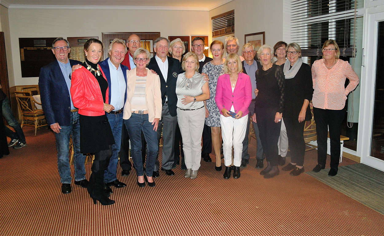 Wieder kein „goldener Oktober“ am 20., dem Tag unseres Abschlussturniers (Chapman-Vierer, 48 gemeldet, 47 am Start): eher diesig, aber immerhin trocken – das hatten wir schon besser! Der abendlichen Stimmung beim Essen, zu dem sich noch 11 weitere Damen und Herren eingefunden hatten) tat dies jedoch keinen Abbruch. Wenn Lautstärke ein Indikator für Wohlbefinden ist, dann stand es damit wiederum zum besten.