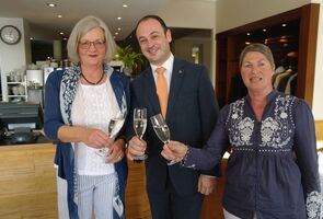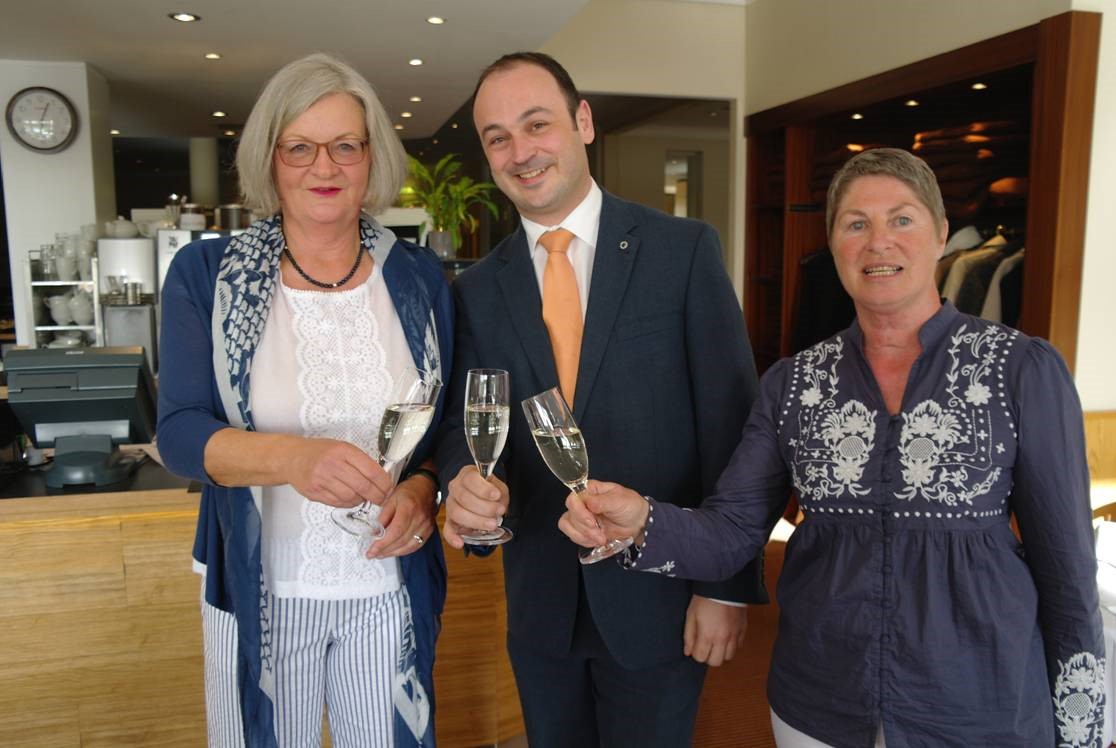 Eine Überraschung zum Half Way hielten Jyske Bank ( Frau Gudrun Krüger und Thies Reimers ) mit Butterkuchen und unsere Hoteldirektion ( Herr Fritz und Frau Bals ) mit dazugehörigem Kaffee für die Damen bereit.