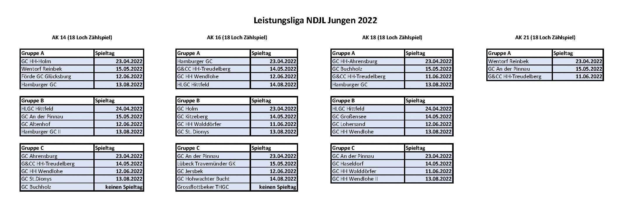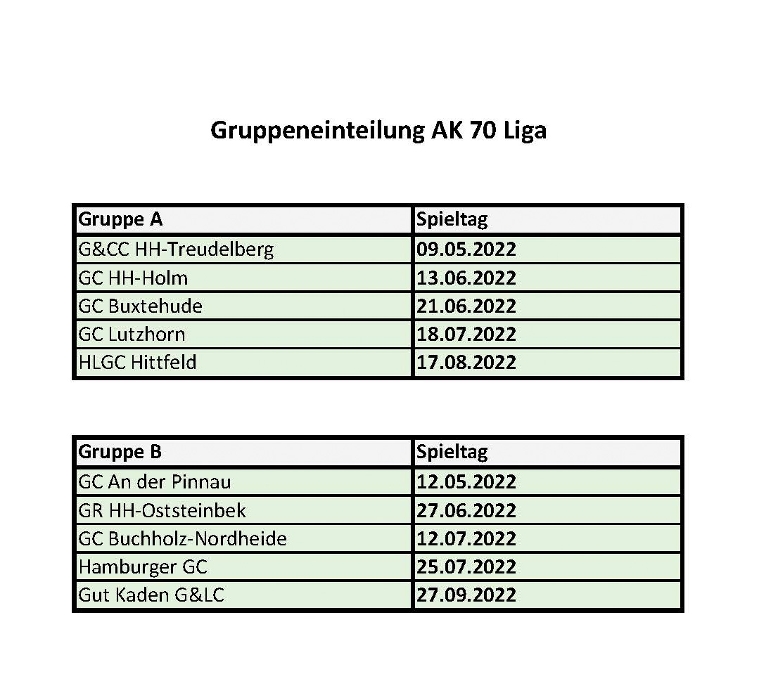 Der Hamburger Golf Verband hat die Ligen-Einteilung für die neue Saison veröffentlicht. Gegen diese Gegner und an diesen Terminen spielen die Treudelberger Teams. Die AK 18 der Jungen tritt als amtierender Hamburger Meister an, die AK 70 als Vizemeister.