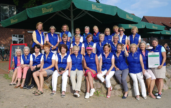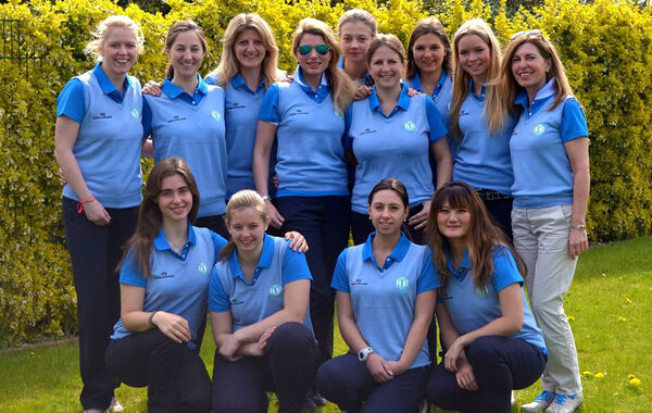 Die Damenmannschaft bei einer Übungsrunde auf Lohersand mit den von Engel & Völkers gesponserten Pullundern!