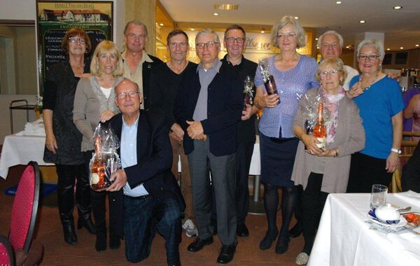 Kein „goldener Oktober“ am 22., dem Tag unseres Abschlussturniers (Chapman-Vierer, 66 am Start): neblig, trüb, gelegentlich ein paar Tropfen – das hatten wir schon besser! Der abendlichen Stimmung beim Essen tat dies jedoch keinen Abbruch. Wenn Lautstärke ein Indikator für Wohlbefinden ist, dann stand es damit zum Besten