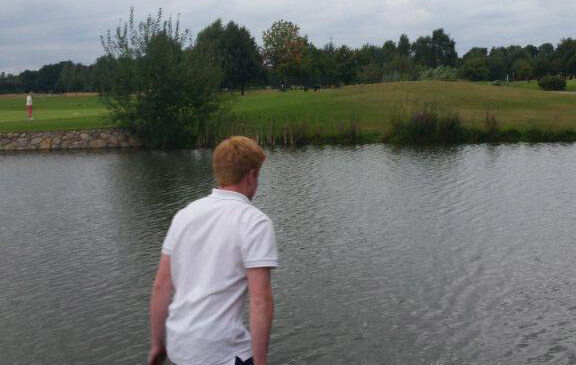 Justus Wähling, gestartet mit einer Stammvorgabe von 10,0 kam von der Runde zurück mit einer sauberen 68. Die Unterspielung um 4 Schläge „bescherte“ ihm eine neue Stammvorgabe von 9,2. Unter großem Beifall verfolgten alle Mitspieler den traditionellen Sprung ins Wasser.