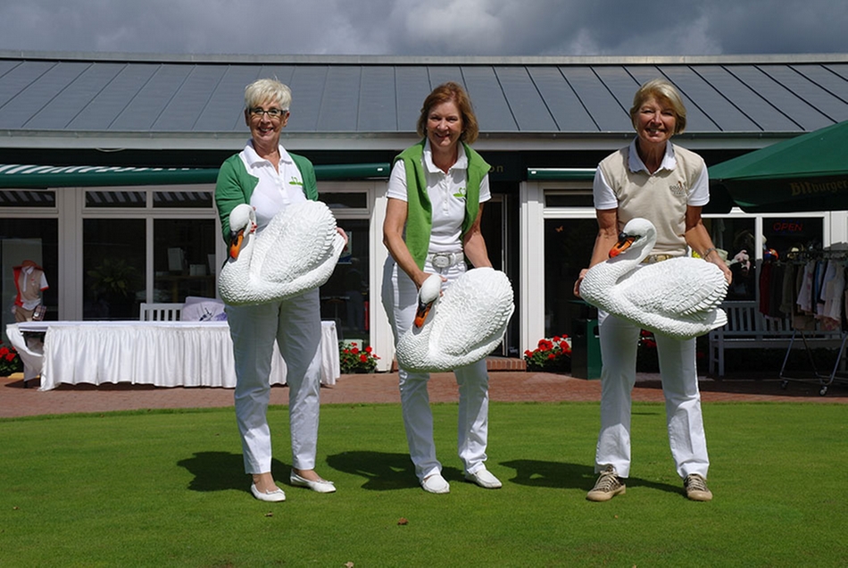 Am 13.08.2013 war es wieder so weit – der Höhepunkt der Damen, das „Schwanenturnier“ stand an. Die Vorbereitungen liefen bereits seit Monaten. Mit wiederum einer riesigen Beteiligung von 120 Teilnehmerinnen aus 27 Golfclubs „ging es ab“ bei sonnigem, regnerischem, bewölktem, gewittrigem, windigem und wechselndem Wetter. Selbst eine kleine zeitliche Unterbrechung wegen eines Gewitters trübte die „Schwanenlaune“ nicht.